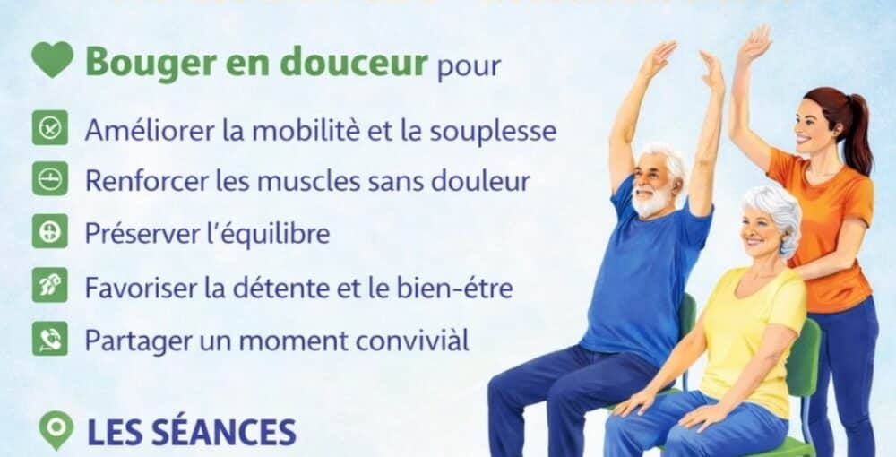 Le CRT Loire Littoral propose des sĂ©ances de gym douce sur chaise, accessibles Ă tous, de Trignac Ă Pornichet. Nos Ă©quipes se dĂ©placent sur le littoral pour venir Ă votre rencontre et vous permettre de rester actif, dâamĂ©liorer la mobilitĂ© et de partager un moment convivial, dans une ambiance bienveillante et adaptĂ©e Ă chacun.