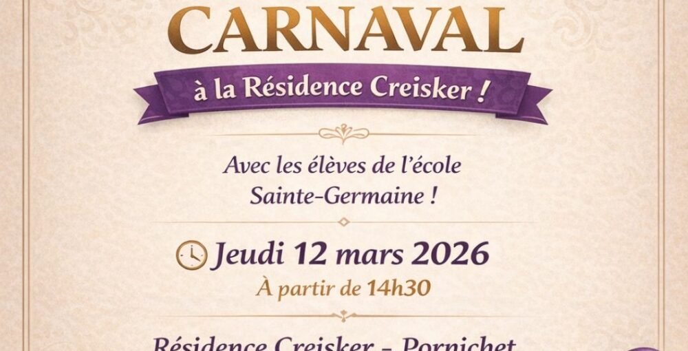 La résidence Creisker à Pornichet aura le plaisir d’accueillir les élèves de l’école Sainte-Germaine pour un après-midi dédié à la célébration du Carnaval.