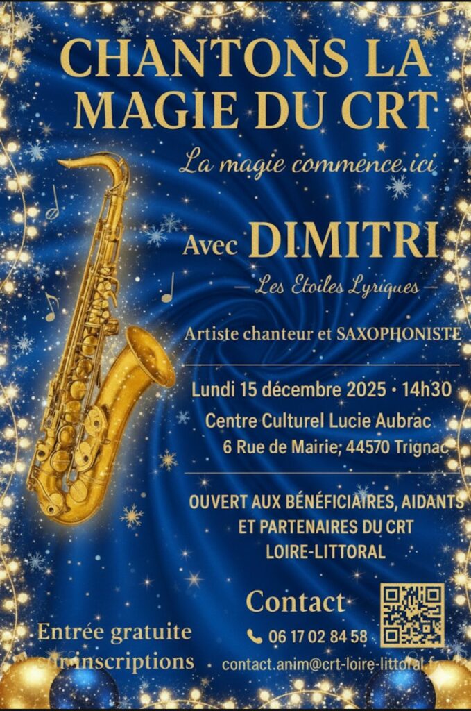 Toute l’équipe du CRT Loire-Littoral est heureuse de vous convier à son spectacle de fin d’année, un moment chaleureux et festif placé sous le signe de la musique et du partage.