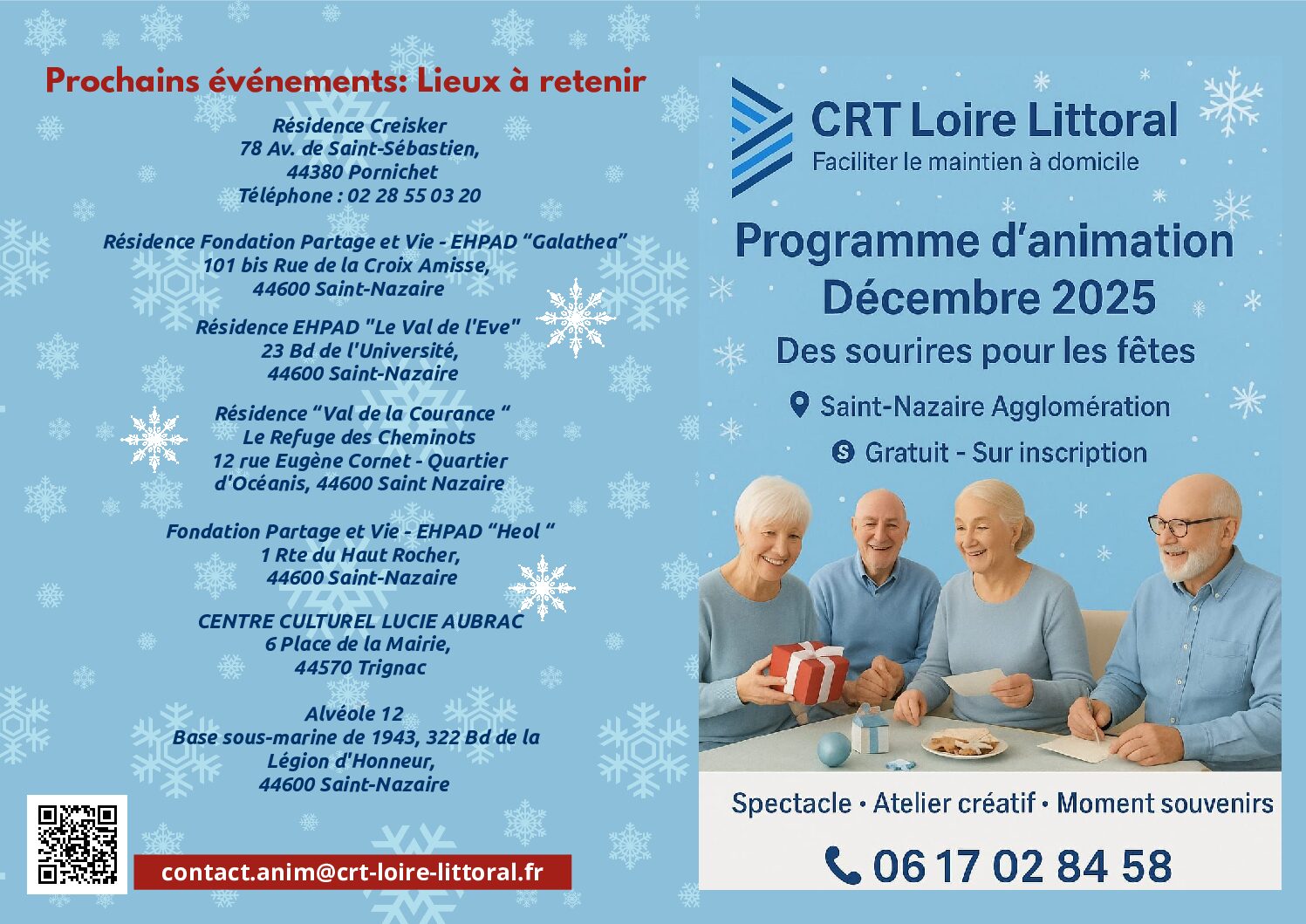 Tout au long du mois de décembre 2025, nous vous invitons à partager des moments chaleureux, pensés pour accompagner les aidants et offrir aux bénéficiaires des instants de bien-être, de créativité et de convivialité.